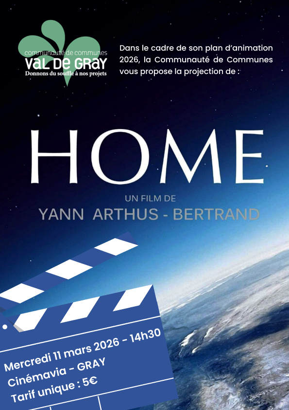 Dans le cadre de son Plan d’animation 2026, la Communauté de Communes Val de Gray vous propose la projection du film Home de Yann Arthus-Bertrand.