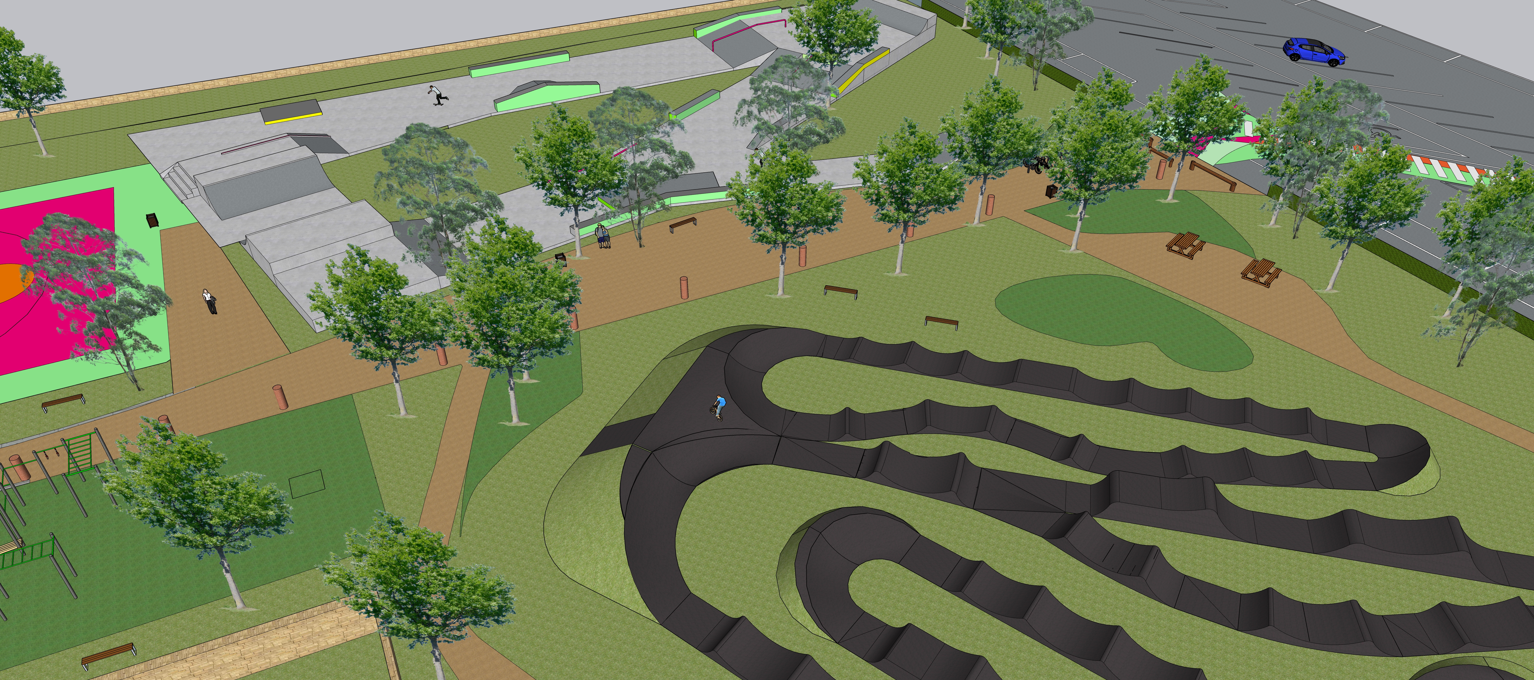Ce projet d’aménagement vise à créer un espace moderne, accessible à tous et dédié aux activités sportives en extérieur. Pensé comme un lieu de rencontre et de pratique libre, il permettra aux habitants du territoire de profiter d’équipements adaptés aux nouvelles pratiques sportives urbaines.